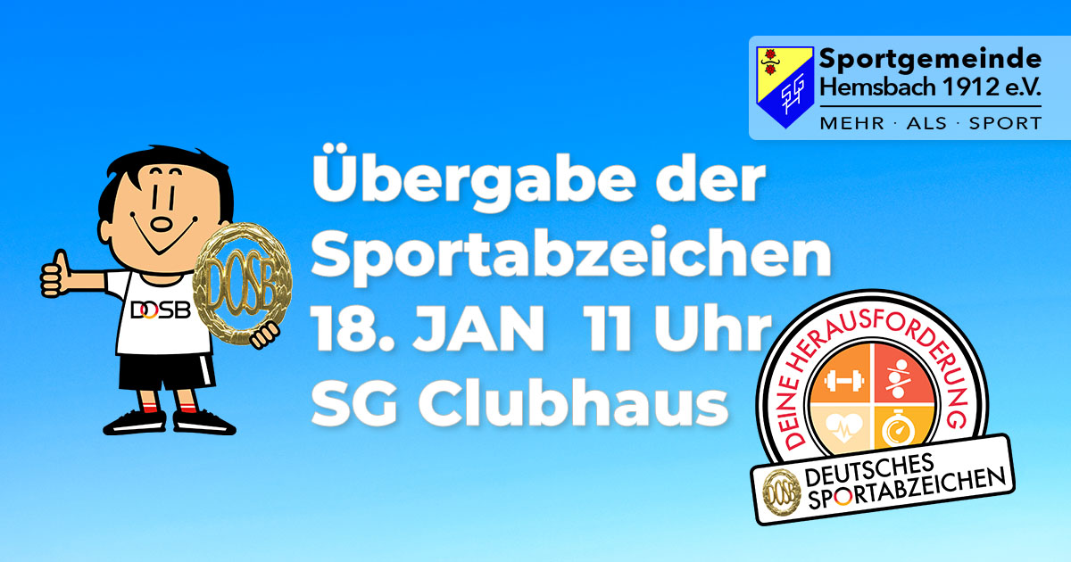 Am Sonntag, 18. Januar 2026 findet ab 11:00 Uhr die Übergabe der Urkunden und Ehrenabzeichen im Clubheim der Sportgemeinde (SG) auf dem Gelände des Stadions an der Hans-Michel-Halle. Dazu sind alle Sportler herzlich eingeladen.