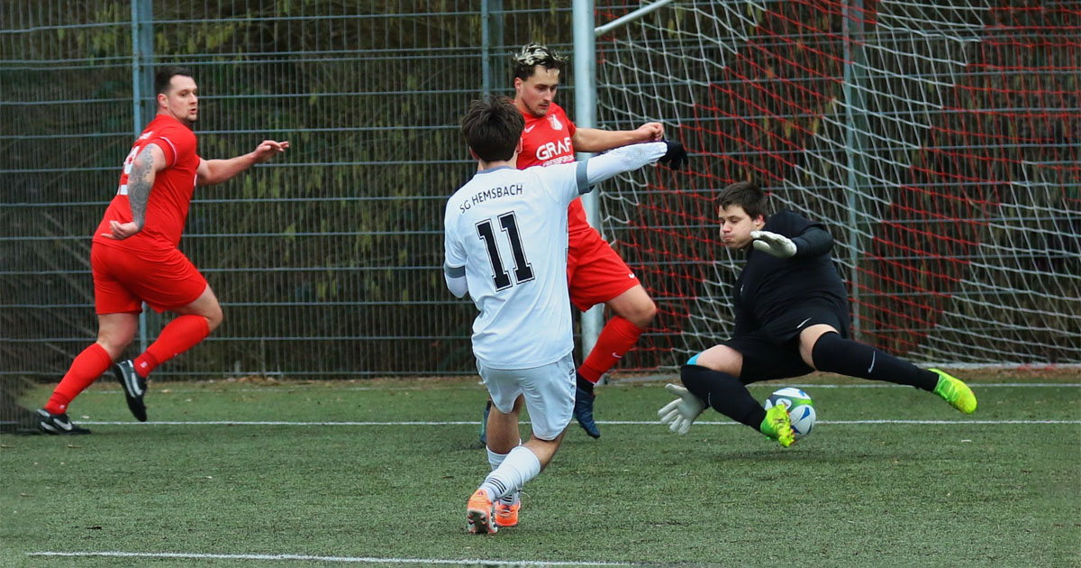 Die SG Hemsbach dominierte zwar das Spiel, kam aber über ein 2:2 nicht hinaus. Eigentlich hätte es zur Pause schon 3:0 oder 4:0 stehen können. Aber Mohammed Amallah zweimal, Claas Kronauer, Giacomo Manniello ebenfalls zweimal und Jan Röller mit einem Distanzschuss vergaben. Einzig der in der Winterpause neu dazugekommene Albnor Berisha traf zum 1:0 in der 3. und zum 2:0 in der 41. Minute.