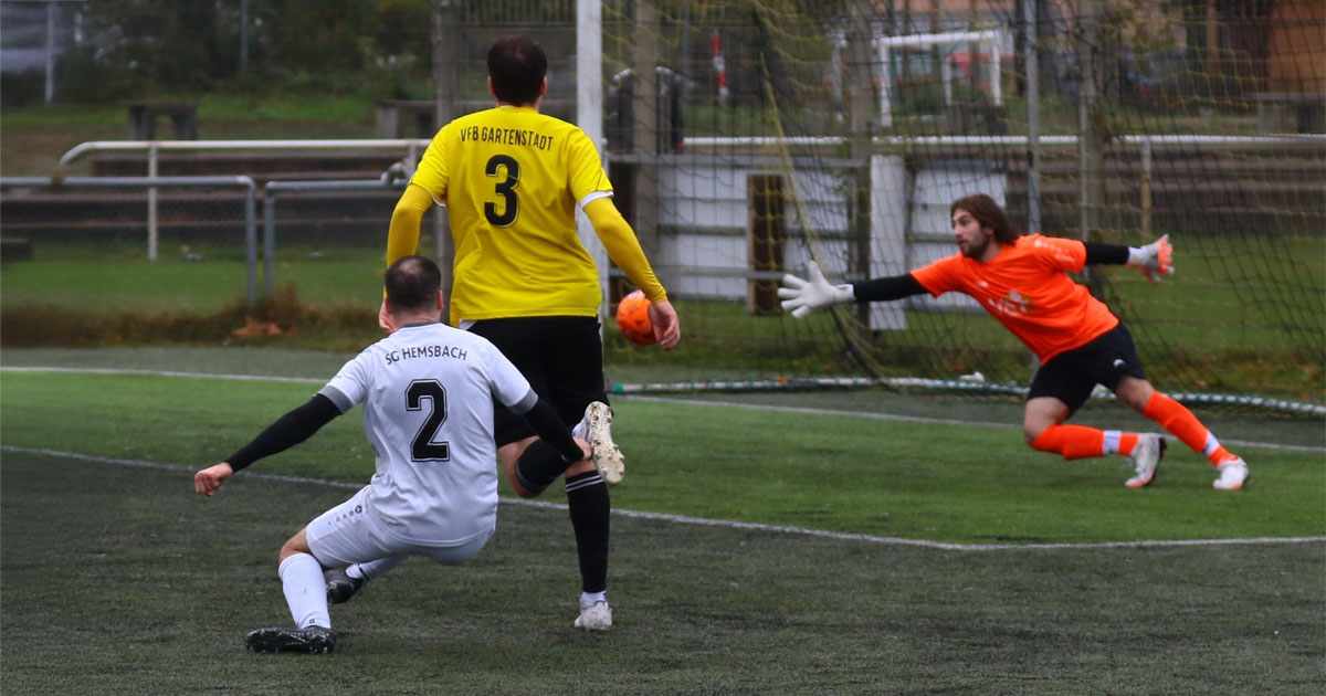 Der VfB Gartenstadt ging mit den ersten beiden Chancen des Spiels gleich in der 8. und 9. Minute mit 2:0 in Führung. Loth und Gutjahr trafen kurz hintereinander. Hemsbach war in den ersten Minuten überhaupt nicht ins Spiel gekommen, hat sich dann aber nach diesen beiden Gegentoren immer mehr gefangen. Man bekam das Spiel von Minute zu Minute besser in den Griff und machte da weiter, wo man letzte Woche aufgehört hatte – und zwar mit einer sehr guten Chancenverwertung.
